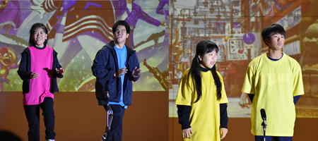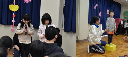幼稚部はダンスやうたでかわいらしく、元気に盛り上げました。小学部はみんながあおむしになり、楽しく演技しました。セリフの中に英語を交えて発表しました。
