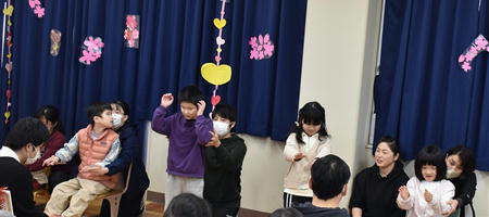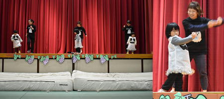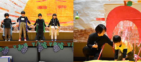 幼稚部は「おゆうぎはっぴょう」、小学部は「はらぺこあおむし~盲学校バージョン~」をステージで発表しました。
