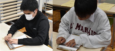普段点字を使用していない生徒は、1年生の時に一度は点字の経験をしていますが、忘れている生徒もおり、