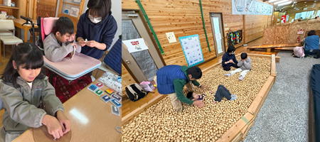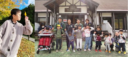 当日はバーべキューコンロを置き、炭火で焼きました。理療科生や、通学生も参加し、みんなでおいしくできた焼きいもをいただきました。手触りだけで何が入っているかを当てる『箱の中身は?ゲーム』も行い、手触りで箱の中身を想像し、松ぼっくりやドライヤーなどを当てて楽しみました。初めて寄宿舎に来てくれた幼稚部生は、理療科生としゃべったり、歌に合わせて踊ったり、いつもと違う雰囲気のなか、おいしく、楽しく過ごしました。